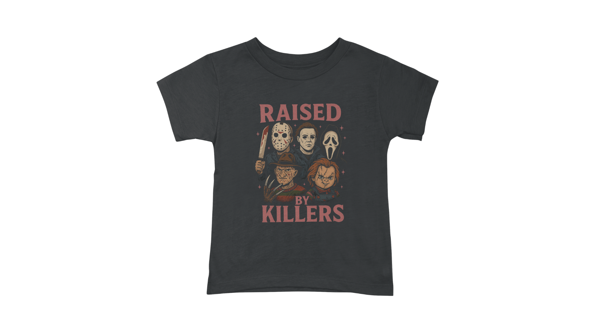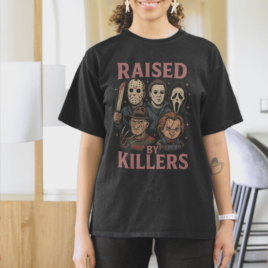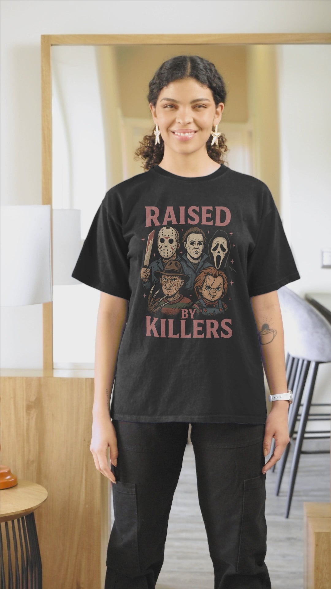 Raised by Killers Horror Graphic Tee - Halloween Movie Shirt