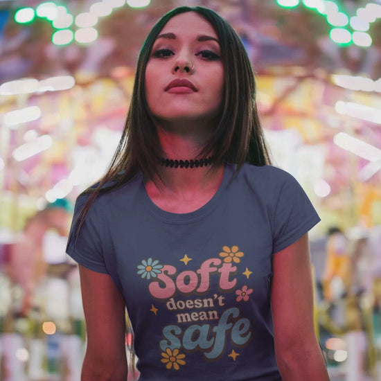 Soft Doesn’t Mean Safe” Retro Feminist Tee – Graphic Tee